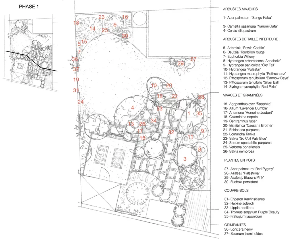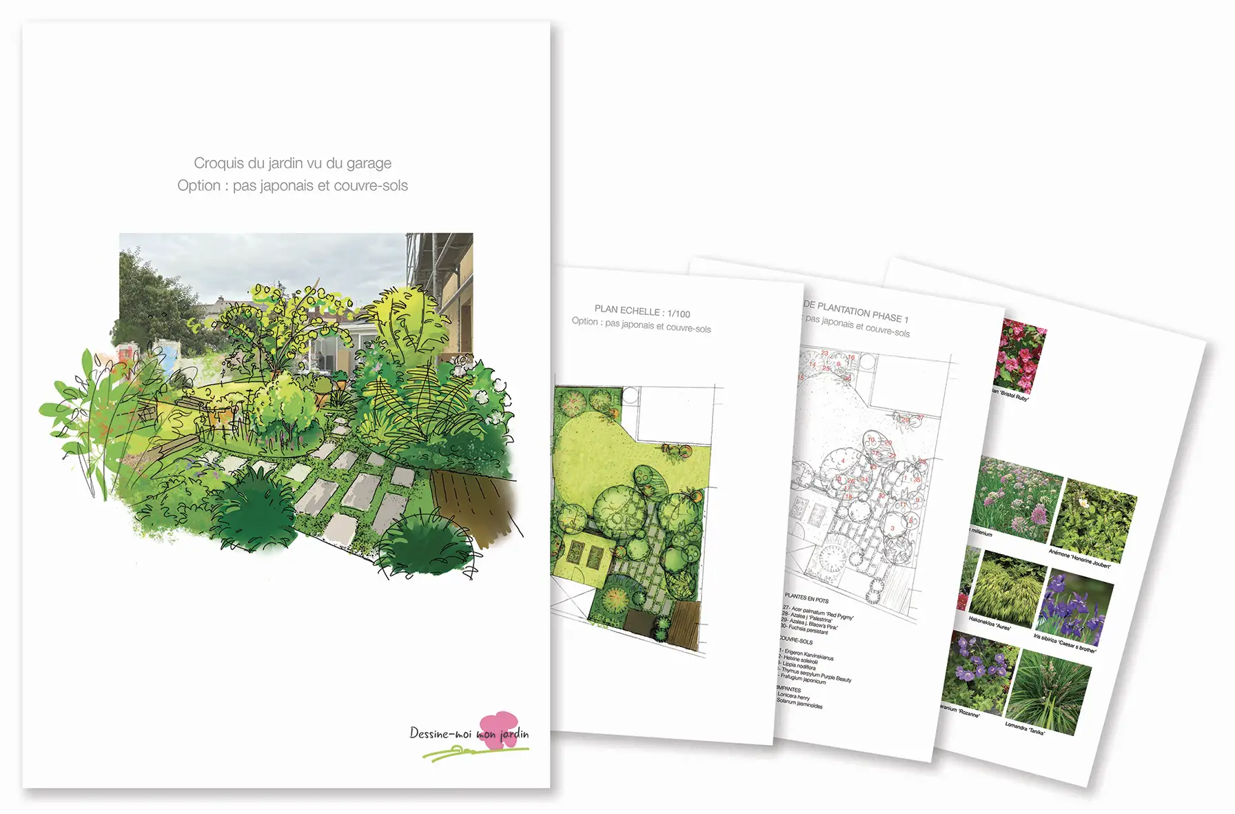 Lors de notre rendez-vous, je vous remettrai l’ensemble des éléments graphiques de votre aménagement extérieur : plan du jardin à l’échelle, perspectives, plan de plantation, fiche de végétaux et matériaux sous forme d’un carnet.