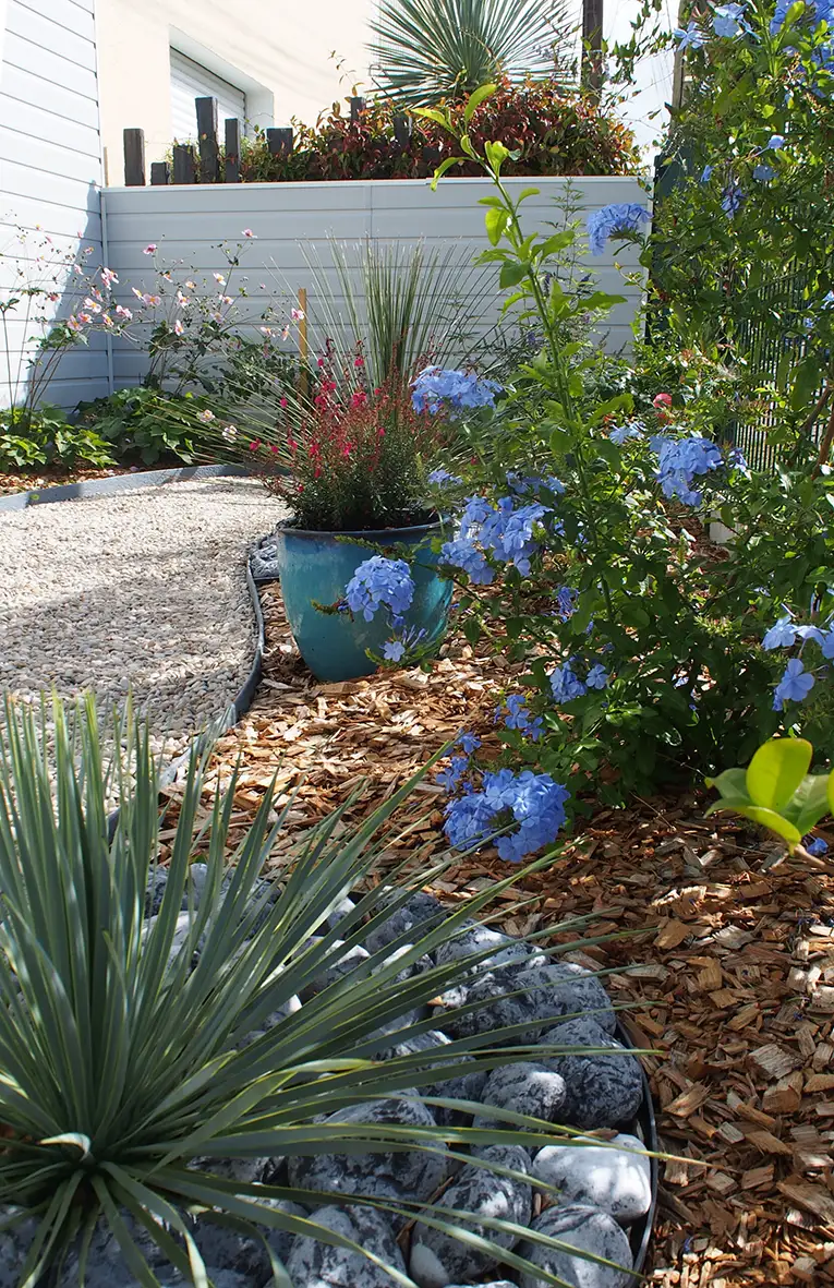 Arbres ou arbustes masquant un vis à vis, créant un intimité, diffusant une ombre plaisante, arbustes et vivaces fleuris pour embaumer votre jardin, succession de fleurs pour l’égayer toute l’année, floraison abondante et mellifère pour favoriser la biodiversité, art topiaire, grimpantes pour dissimuler un mur disgracieux, graminées légères, plantes aromatiques et condimentaires pour parfumer vos plats, légumes perpétuels, prairie fleurie, couvre-sol pour remplacer la pelouse et limiter l’arrosage. Une diversité d’arbres adaptés à notre climat océanique permettra d’arborer votre jardin.